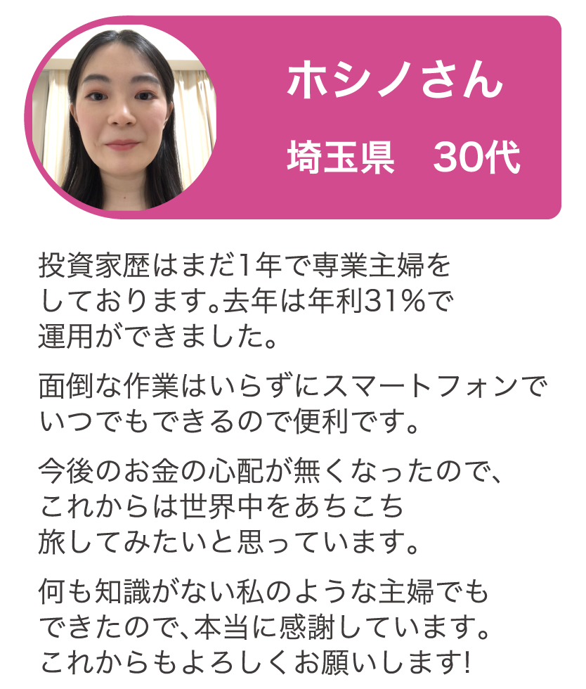 投資は難しいから私には絶対にできない、と思っていましたので、